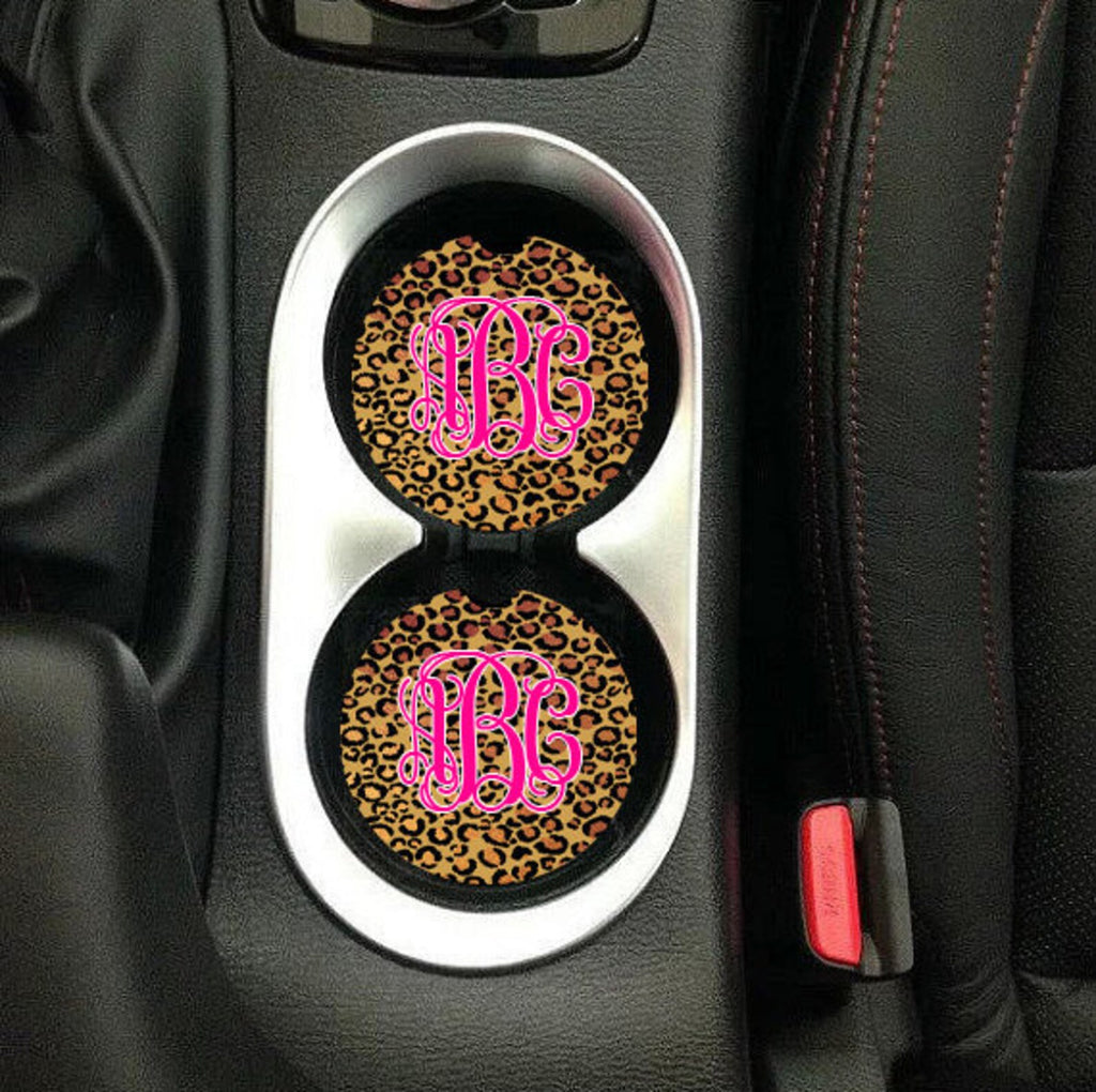 Leopard Print Monogram Sandstone Car Coasters